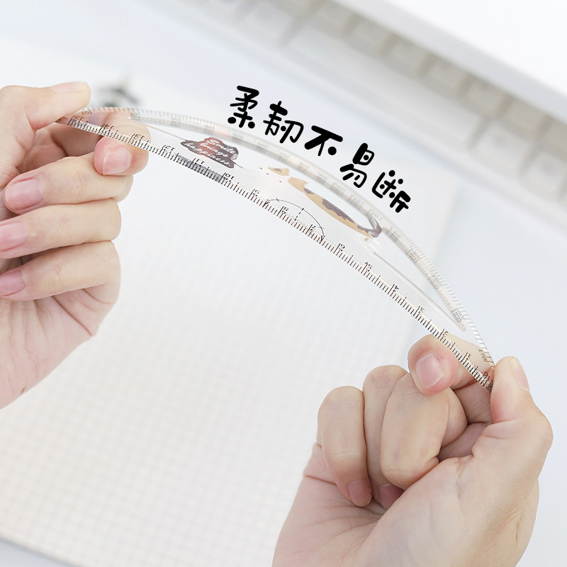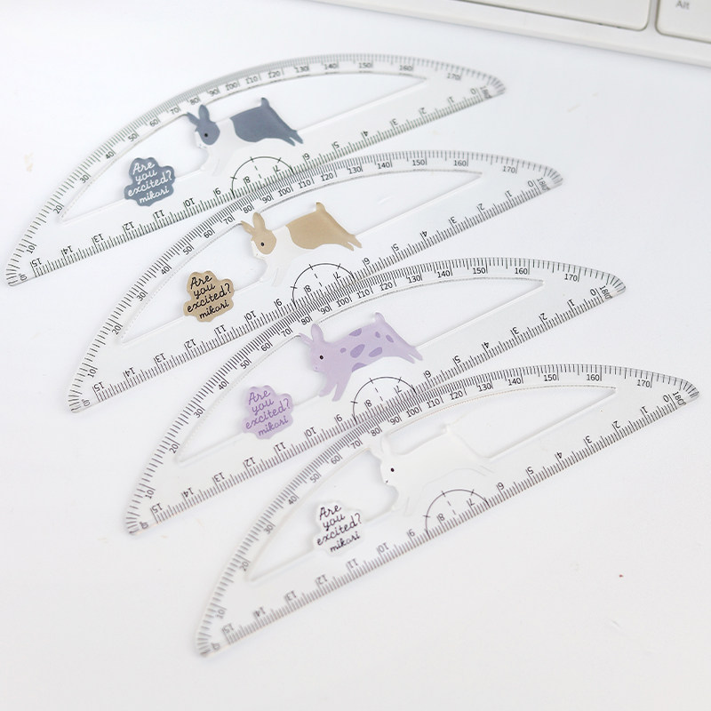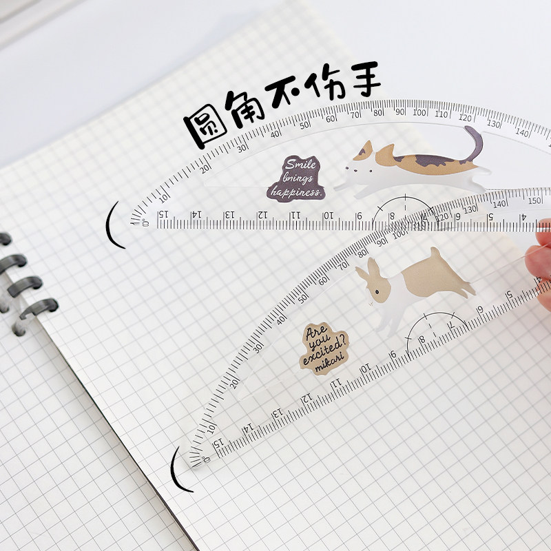 美卡瑞直尺180度绘图尺角度尺透明量角器环保塑料半圆小学生画画量具直尺工具尺子儿童幼儿园文具高颜值趣味