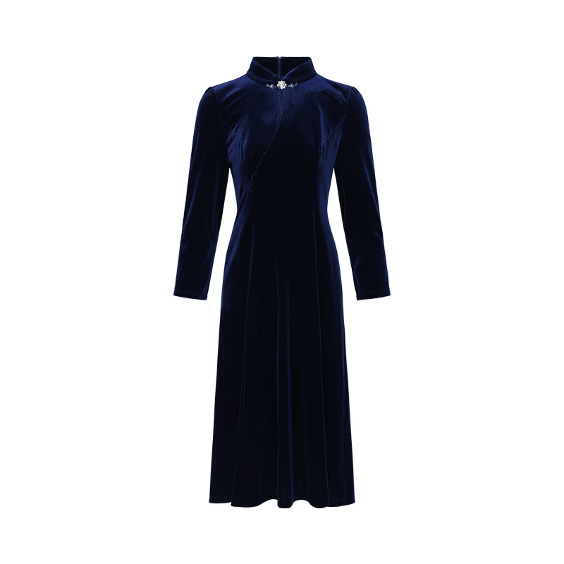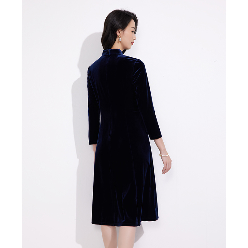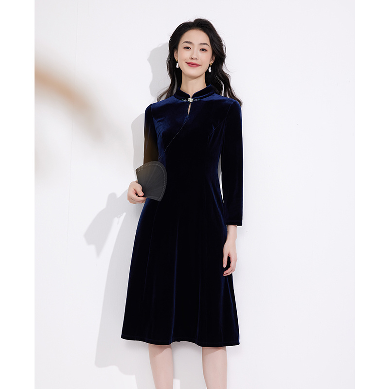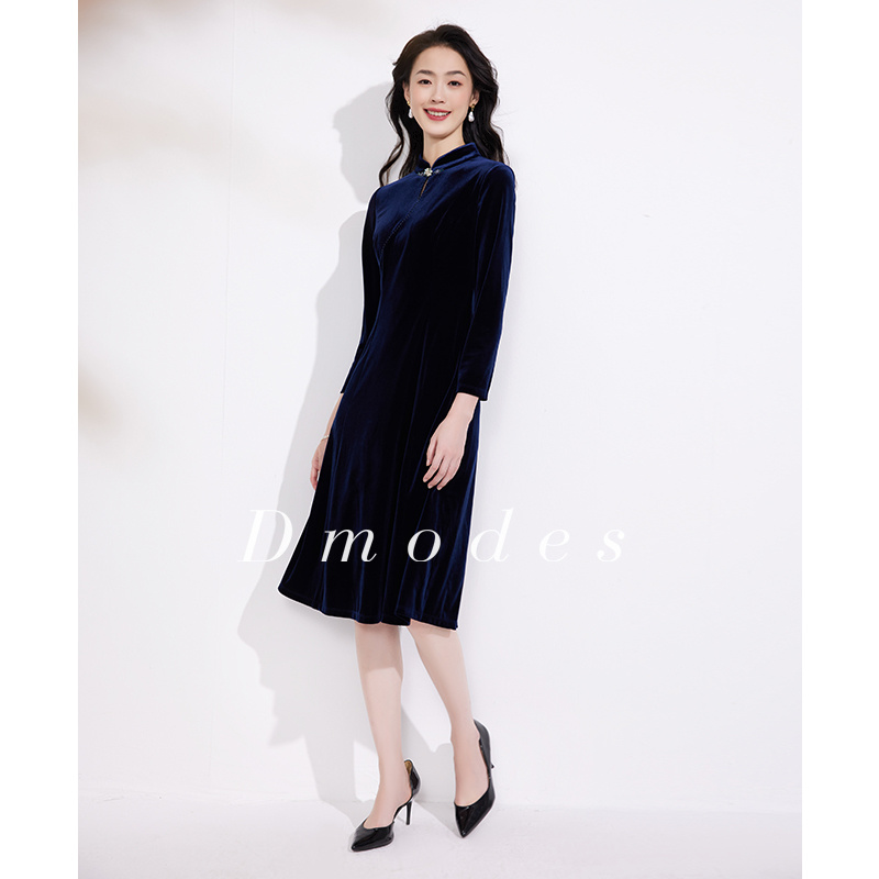黛玛诗显瘦花裙子秋冬新款改良旗袍宴会礼服精致国风丝绒连衣裙女