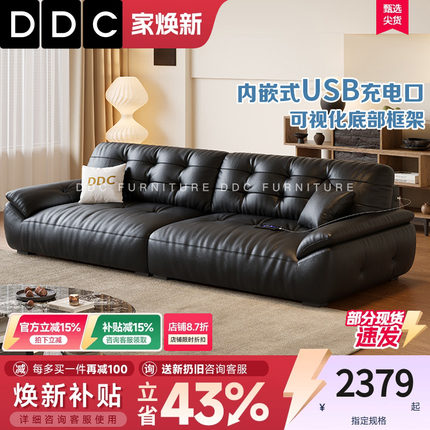 焕新补贴DDC意式极简黑色真皮沙发客厅中古风新款沙发头层牛皮