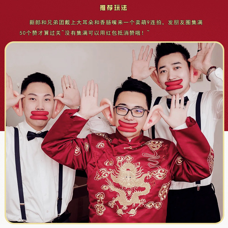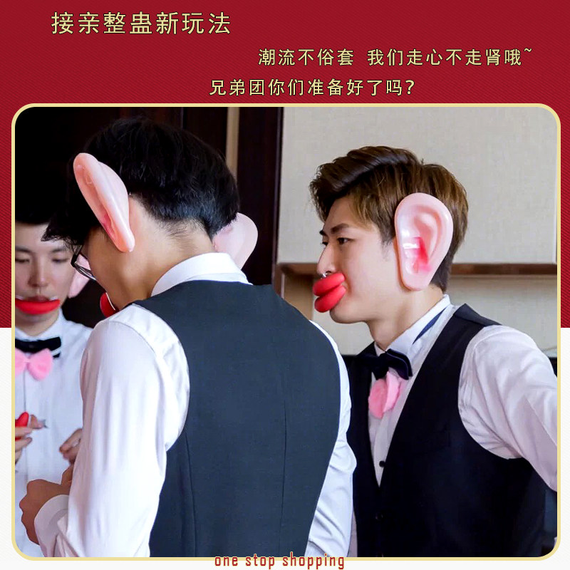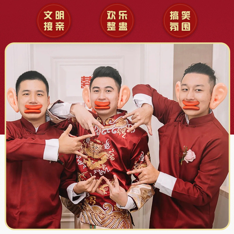 迎接亲整蛊伴郎游戏道具堵门拦门恶搞新郎大耳朵大嘴巴抢亲香肠嘴