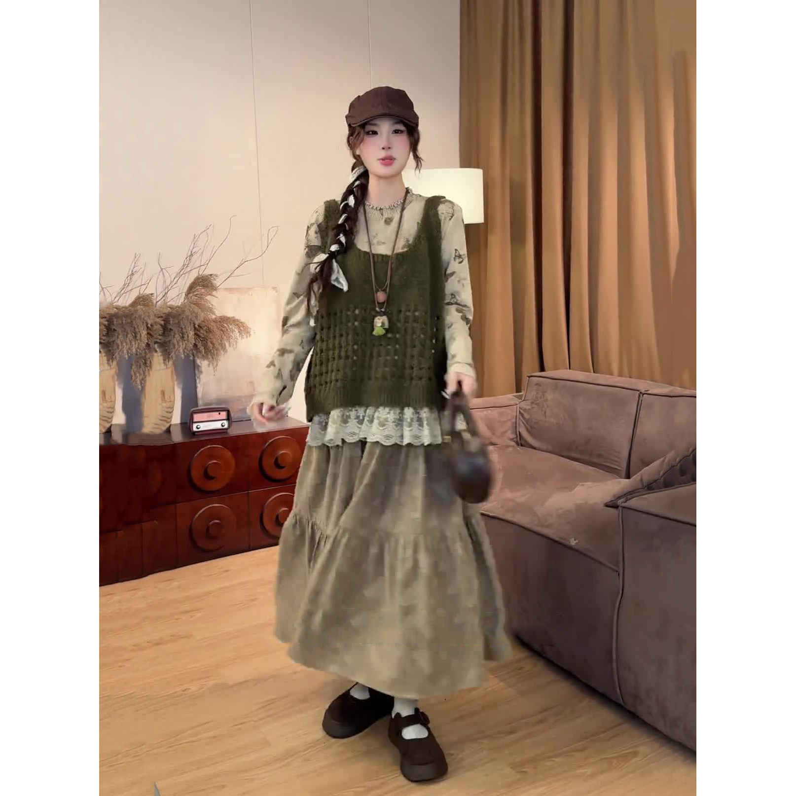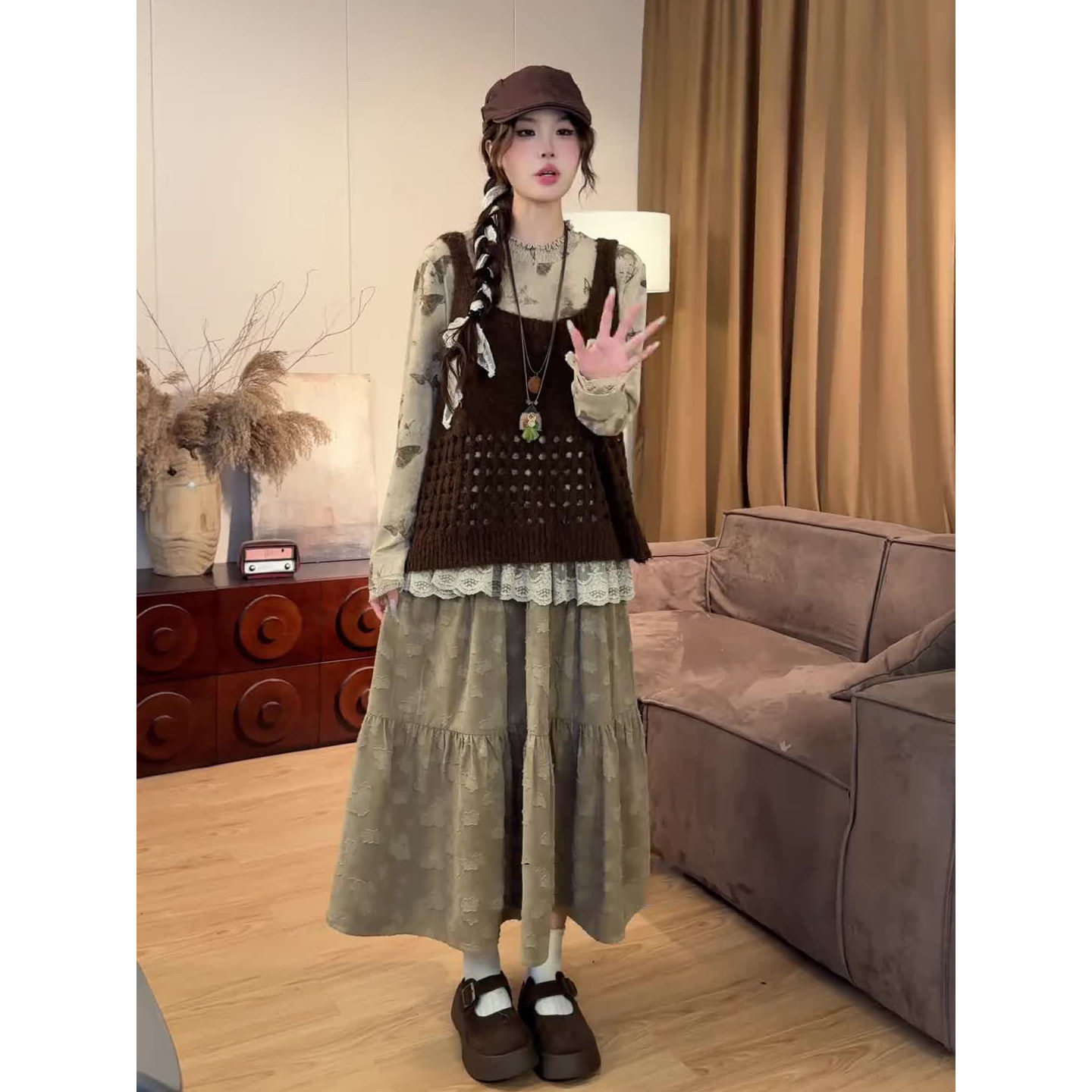文艺森系大码胖mm套装女秋冬小个子显瘦半身裙2026超火穿搭一整套