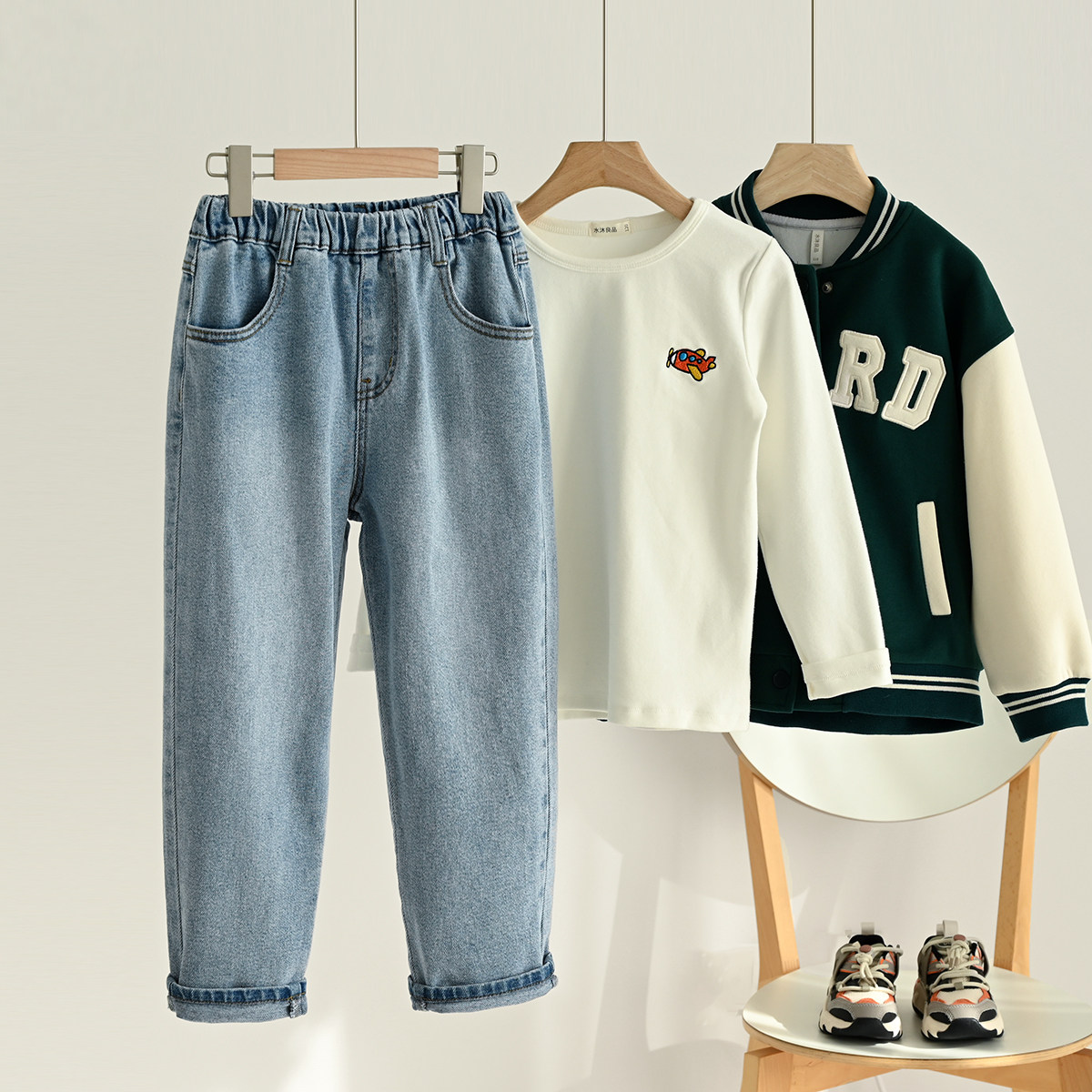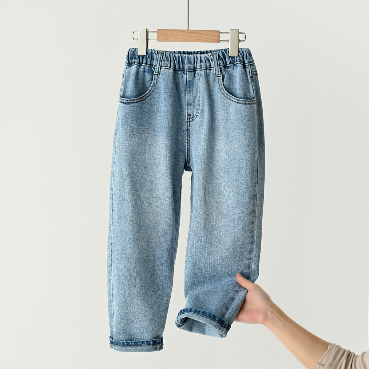 浅蓝色 儿童水洗纯棉牛仔裤 男女童直筒裤 中大童长裤春秋款童装