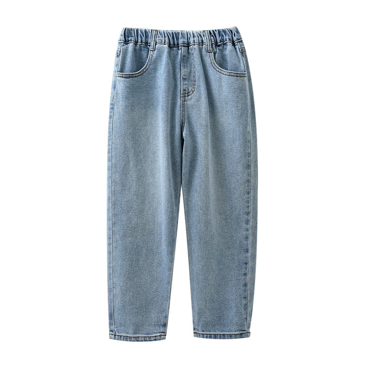 浅蓝中大童牛仔裤老爹裤哈伦长裤