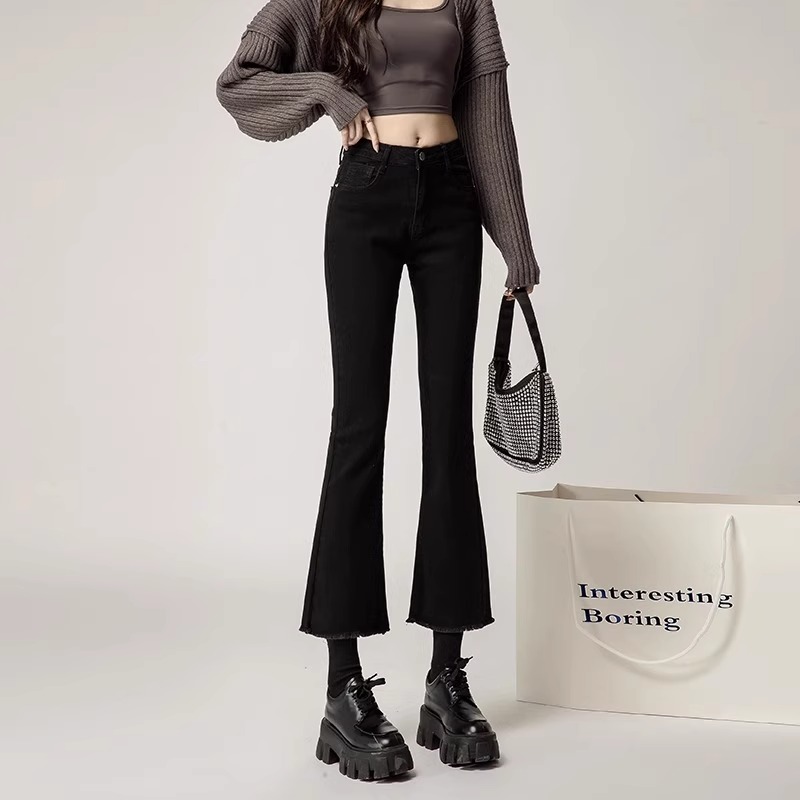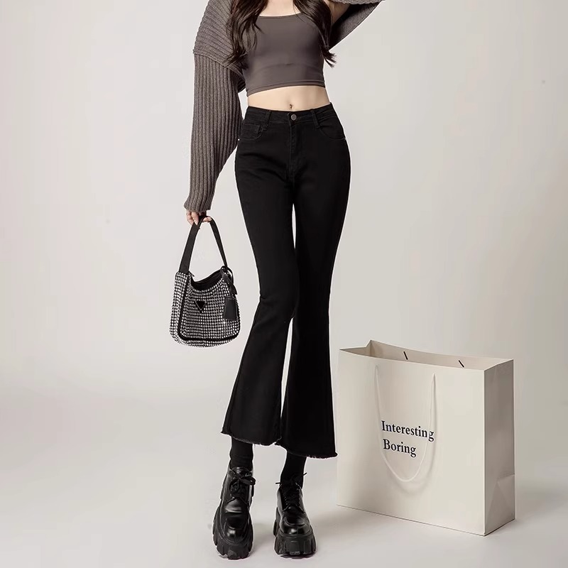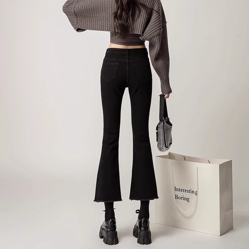 黑色高腰微喇牛仔裤女2023年秋季新款弹力小个子九分显瘦喇叭裤子