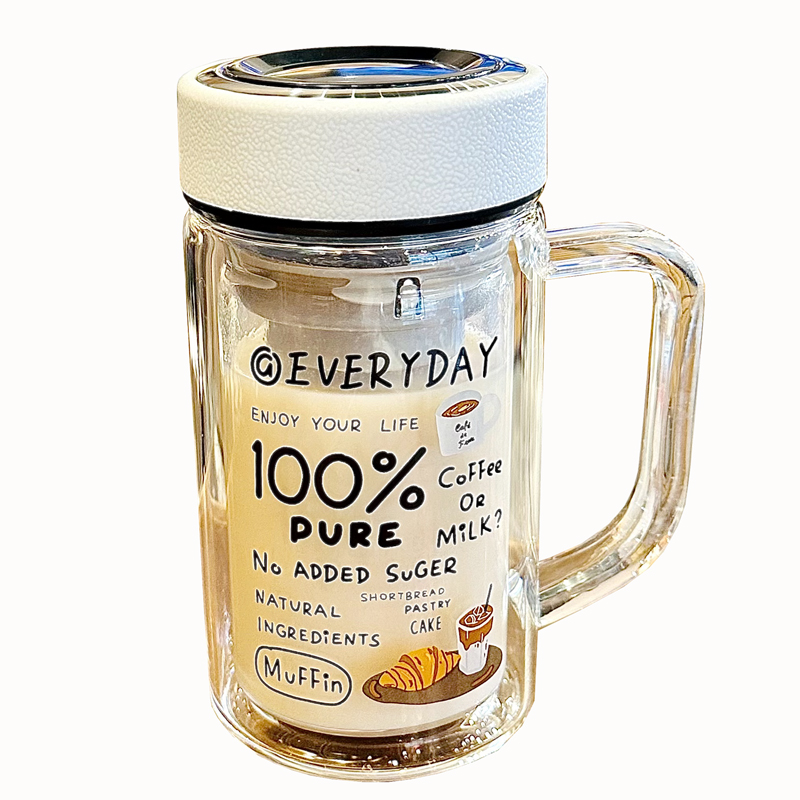 女式上班族水杯2025新款高颜值双层玻璃杯带把手茶水分离泡茶杯子
