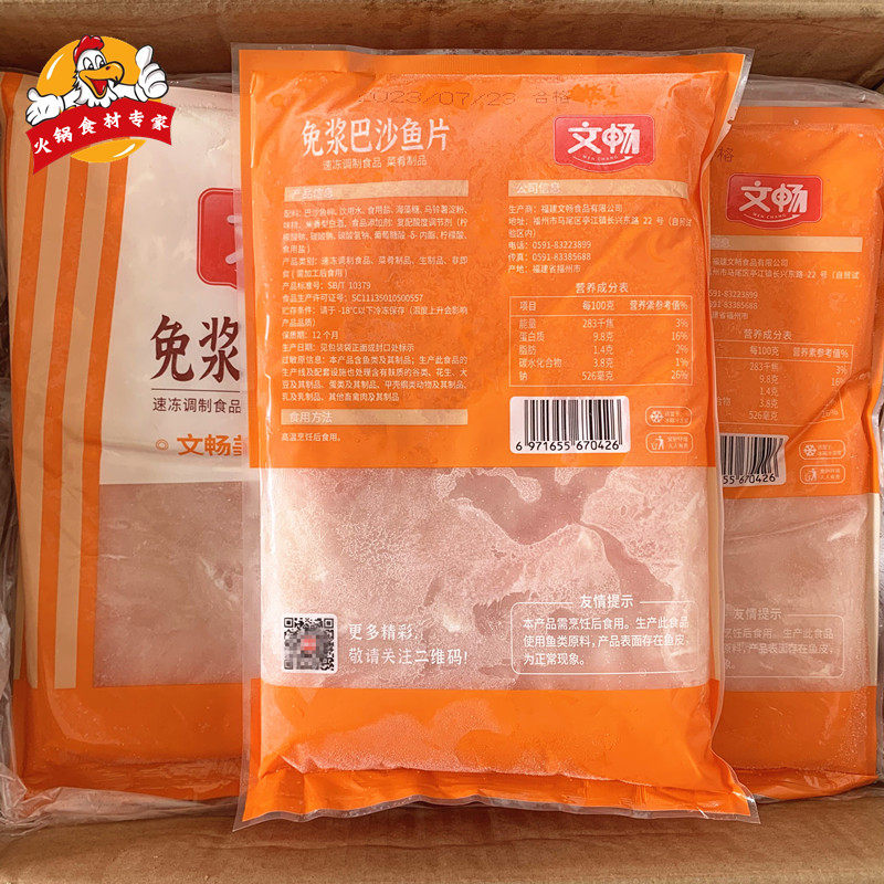 文畅巴沙鱼片免浆鱼片20斤10包酒店半成品腌制生鱼片巴沙鱼片包邮