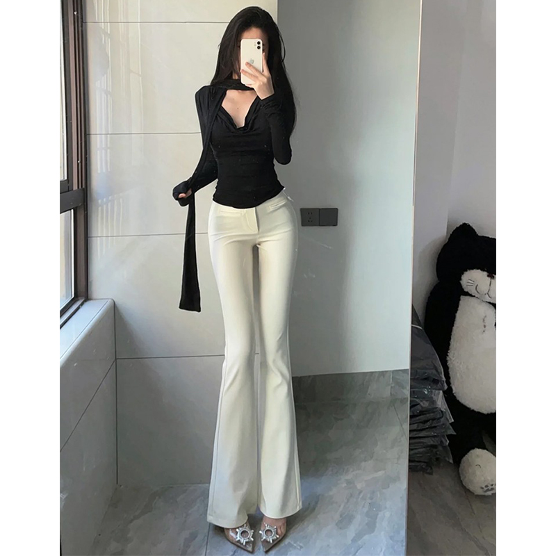 西装裤女春秋2025新款马蹄裤米白色微喇叭裤休闲高腰显瘦长裤子