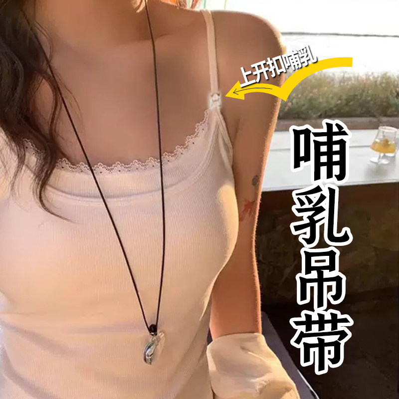 哺乳吊带背心式免穿文胸防下垂内衣夏季外穿纯棉女大码美背哺乳期