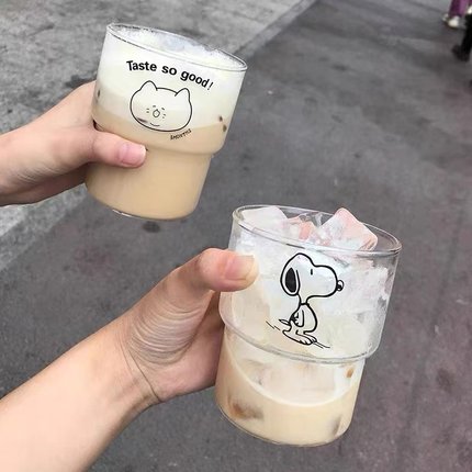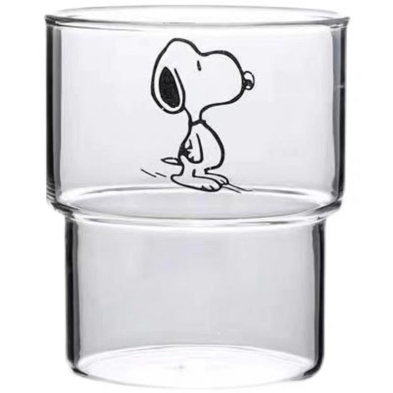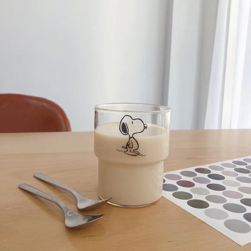 韩式ins风小狗史努比插画玻璃杯高硼硅耐高温咖啡杯牛奶杯喝水杯