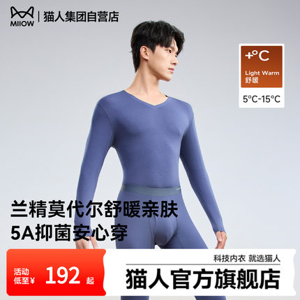 猫人保暖内衣套装男2025新款秋衣秋裤打底衫无痕V领莫代尔保暖衣