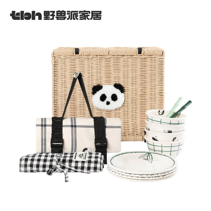 tbh野兽派家居熊猫嘭嘭系列竹纤维餐具套装家用乔迁碗筷碟子套装