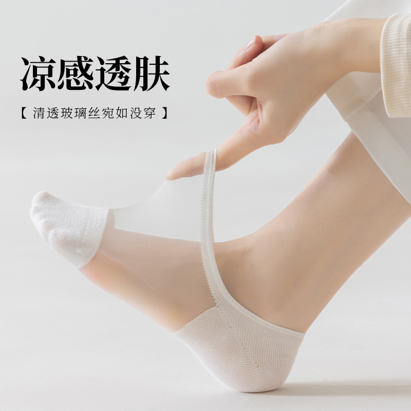 超薄水晶丝透气短袜女夏季清凉镂空浅口袜防滑不掉跟女士隐形船袜