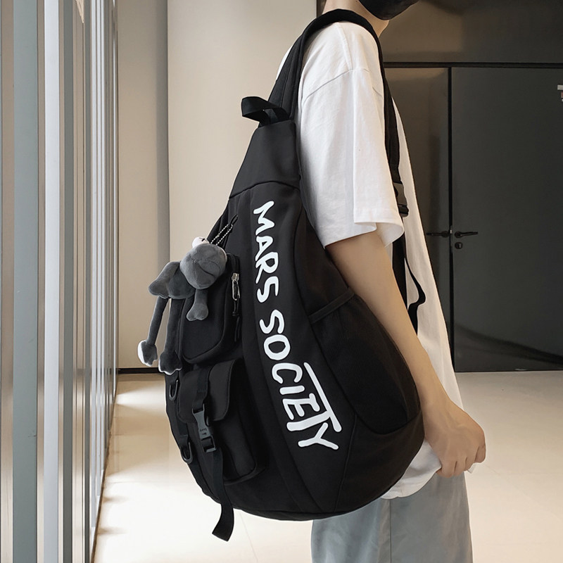 潮牌斜挎包男胸包ins街头跨包休闲大容量斜挎背包大学生单肩包女