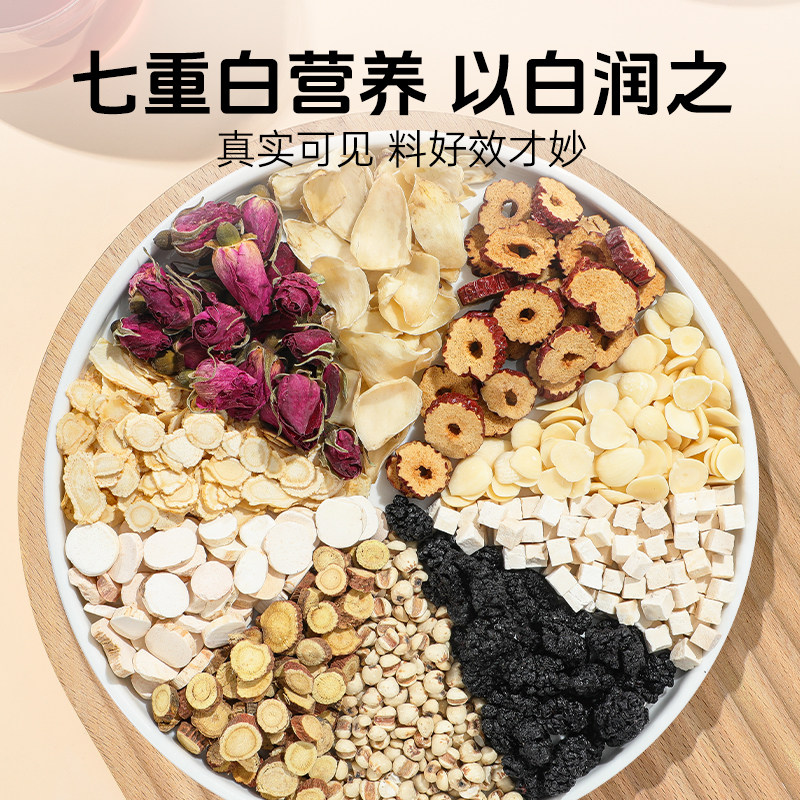 老谷头西洋参七白茶桑葚重瓣玫瑰薏米甘草大枣杏仁山药百合茯苓茶