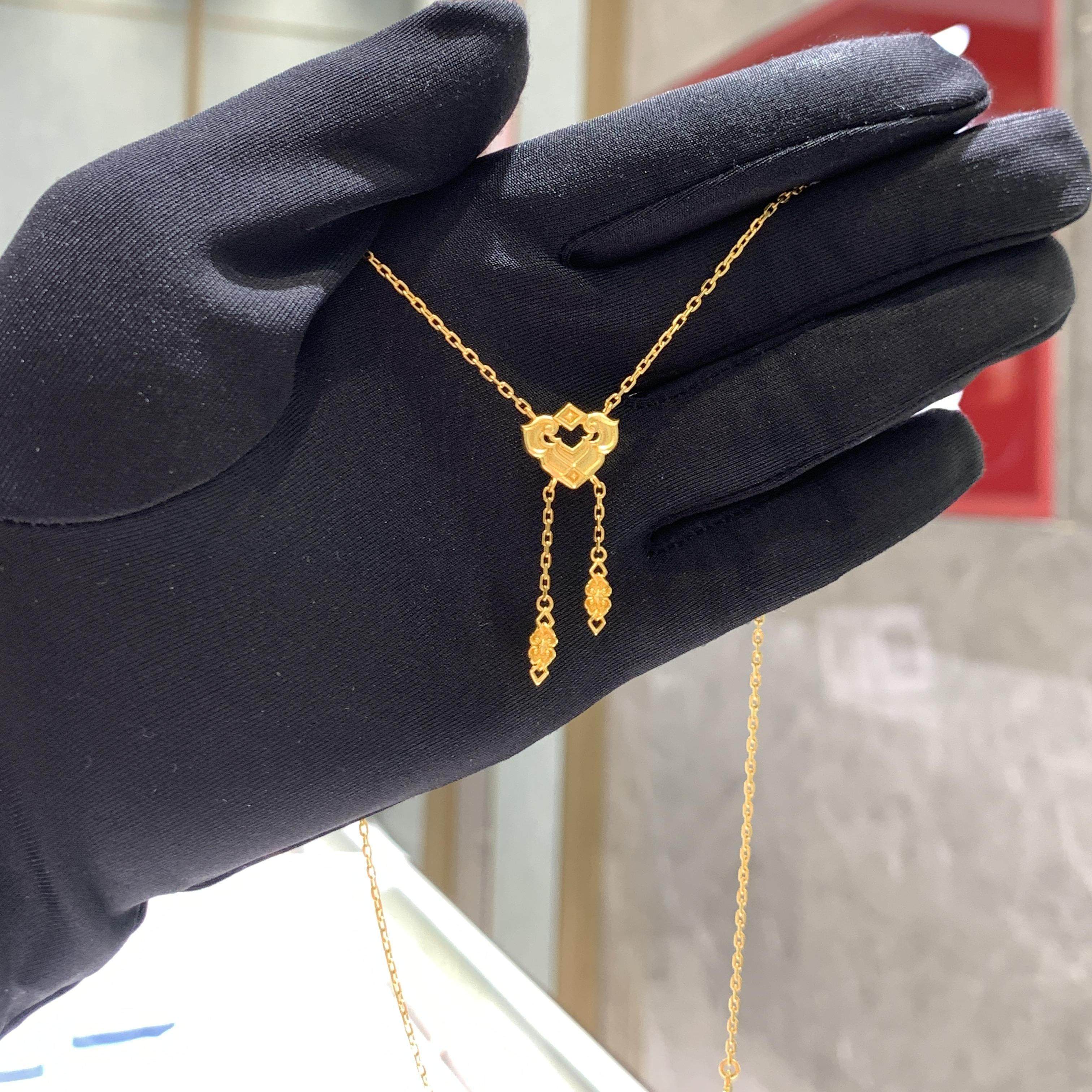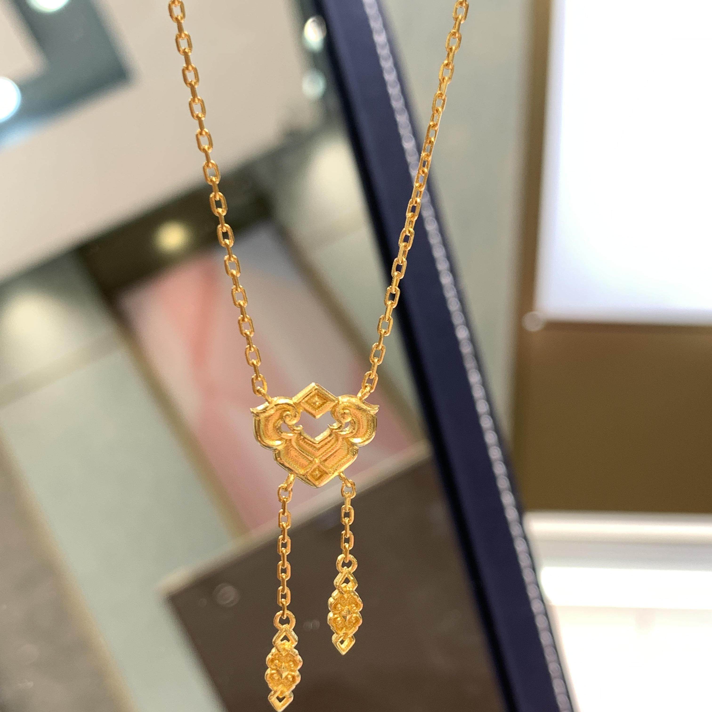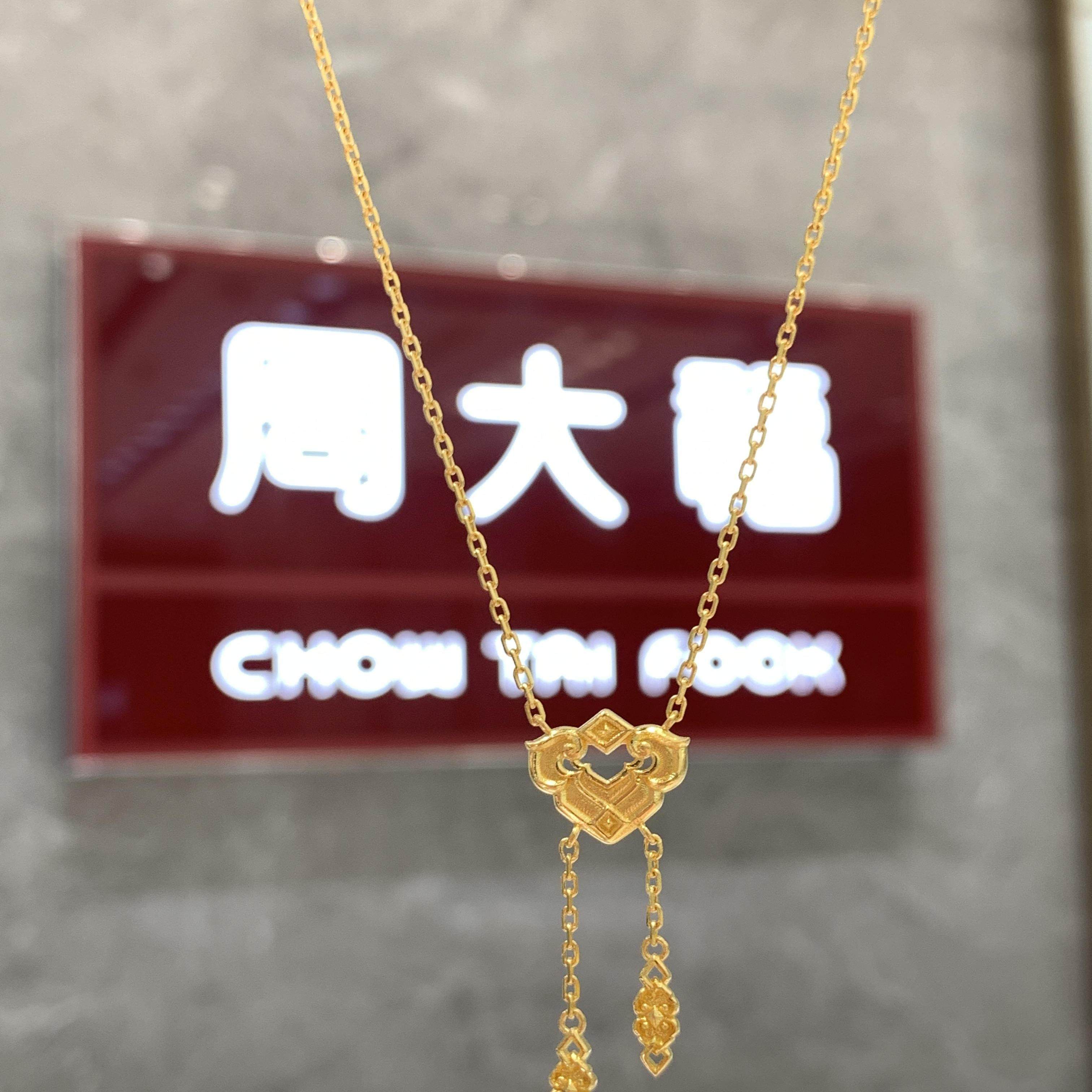 周大福代购 婚嫁牵囍系列方如意流苏黄金项链女克减80计价F234404