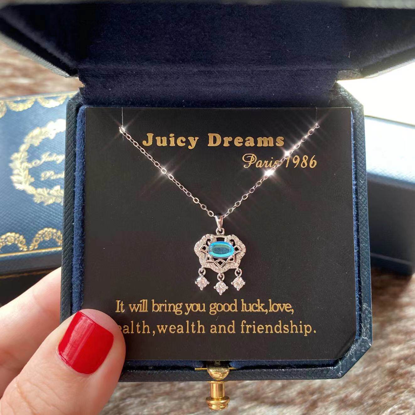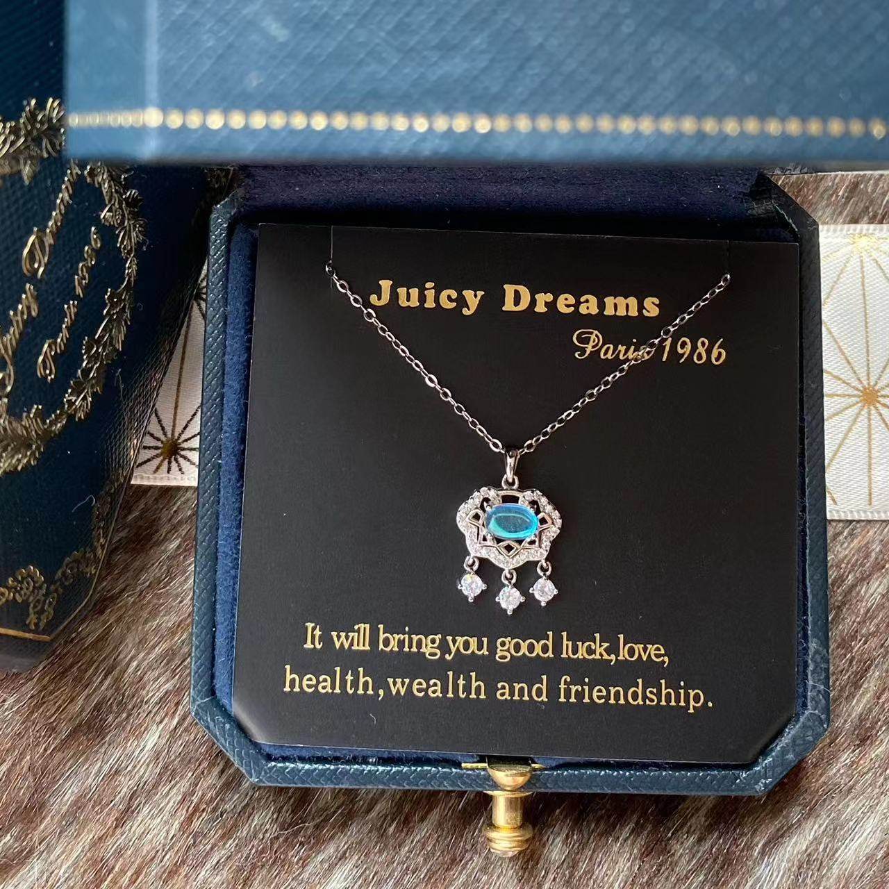 轻奢法国JUICY DREAMS幸运如意锁长命锁如意平安锁纯银月光石项链