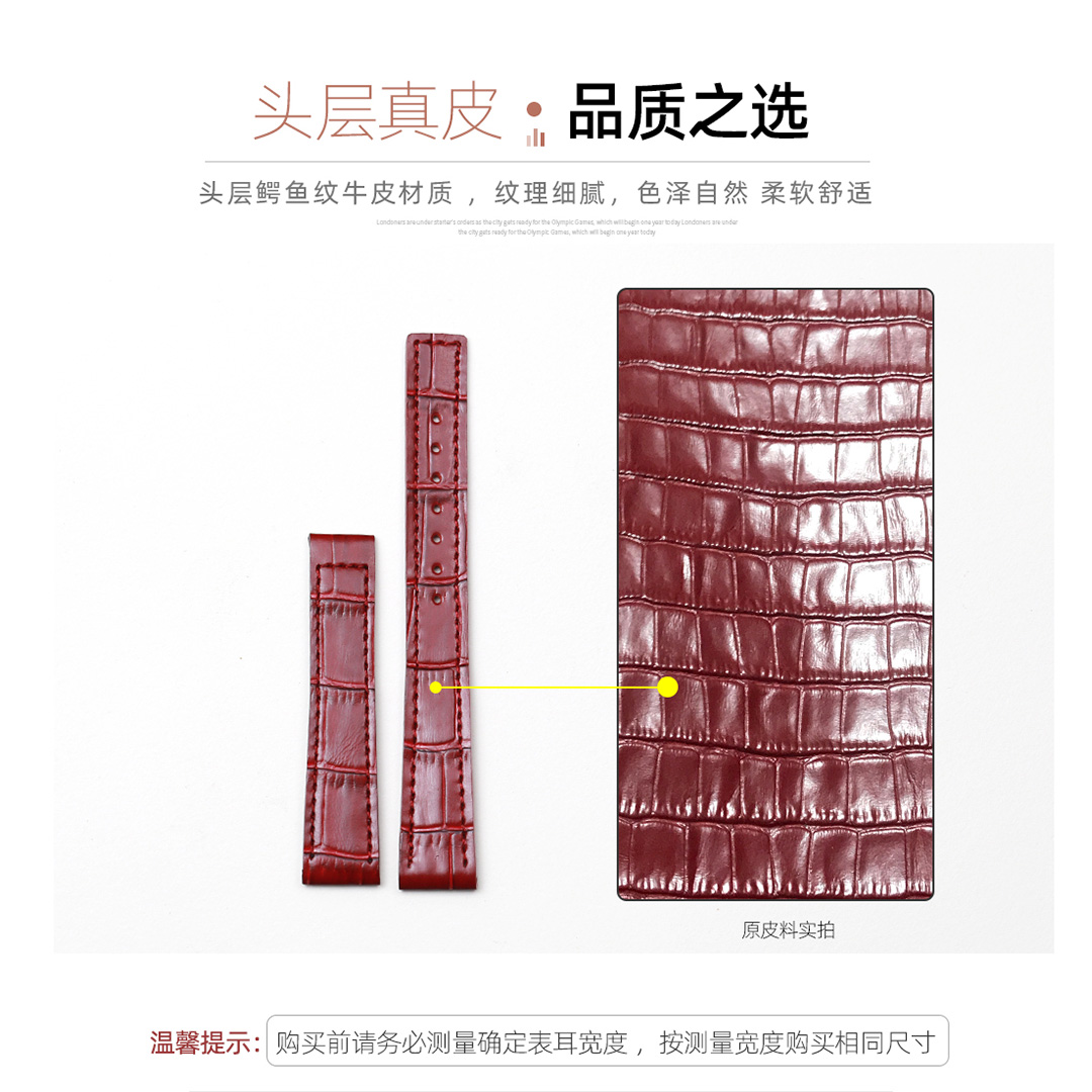 手表配件 适用精工LUKIA酒红色真皮表带 SRP873SSA894 女表折叠扣
