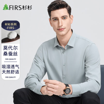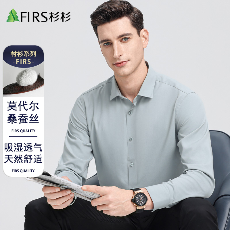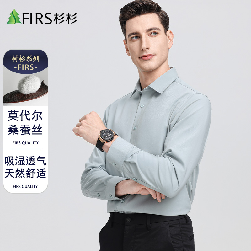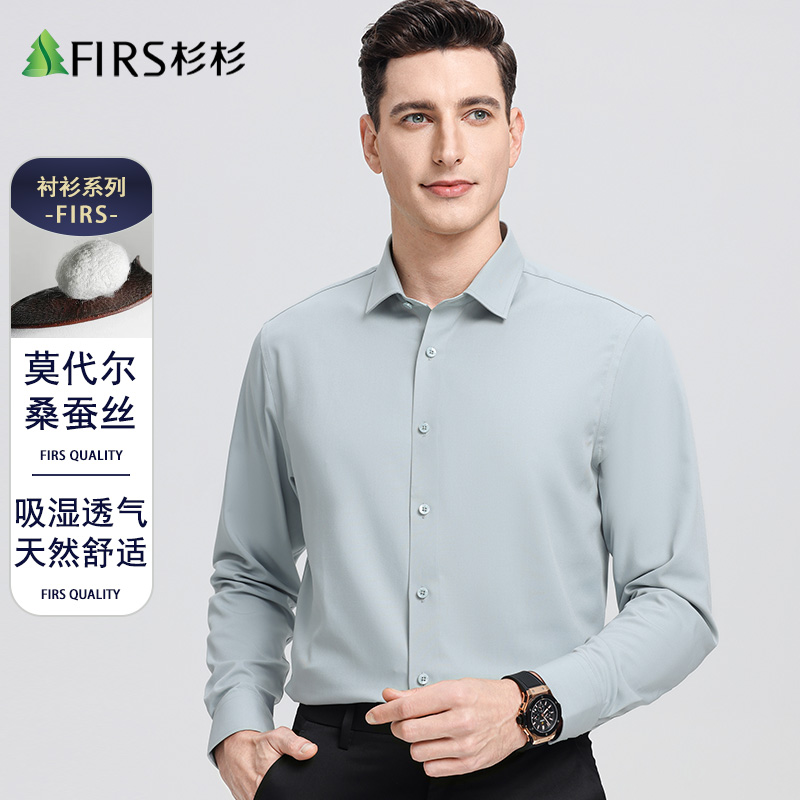 【含桑蚕丝】杉杉男士长袖衬衫职业免烫商务休闲方领衬衣春秋新款