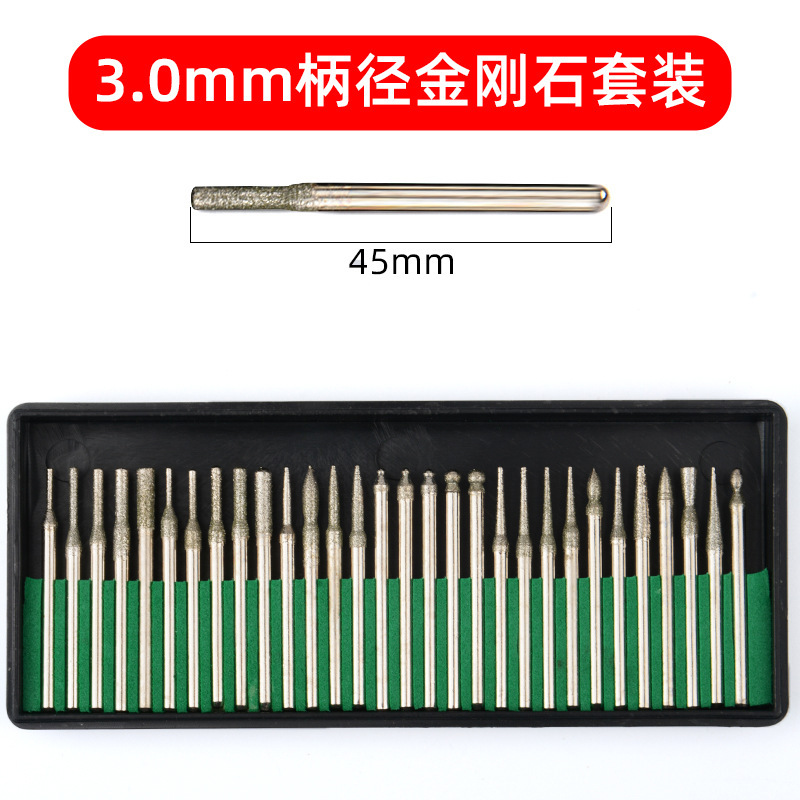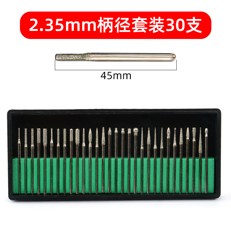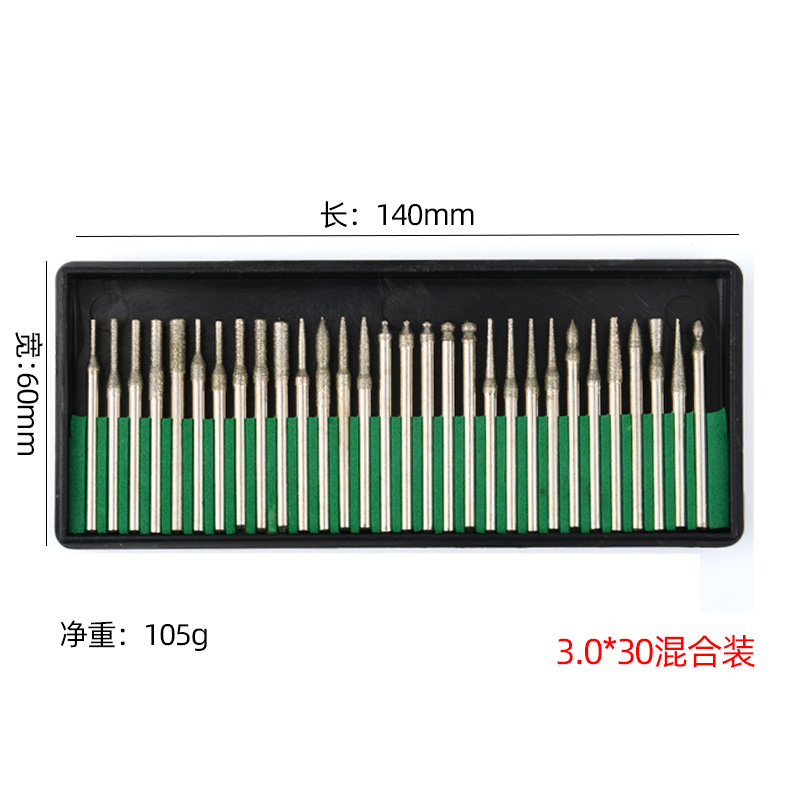 美甲磨头钻石磨棒金刚石磨头3mm套装/2.35柄30支装电镀金刚砂磨针