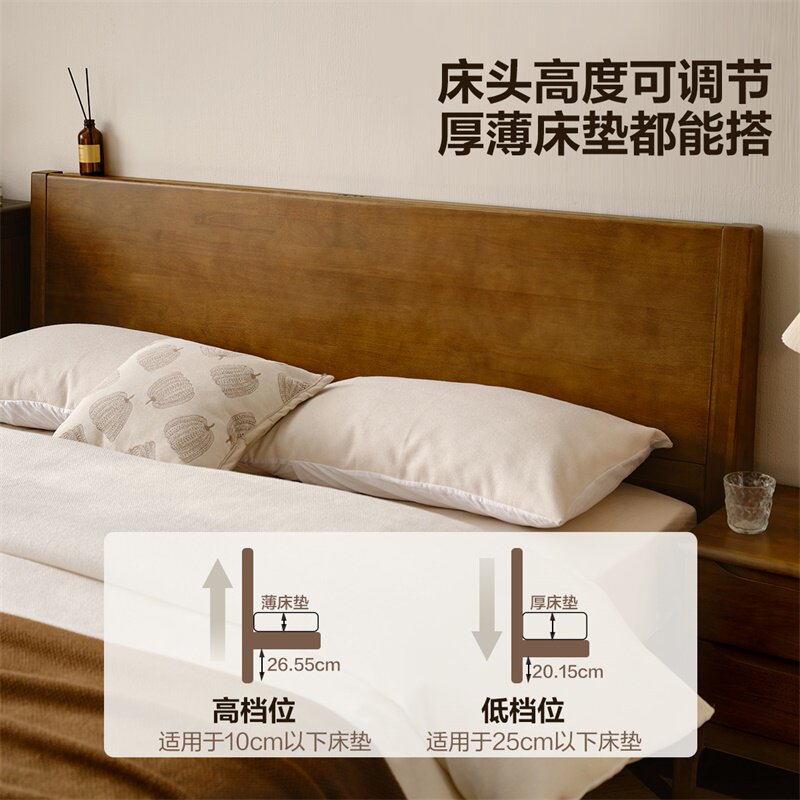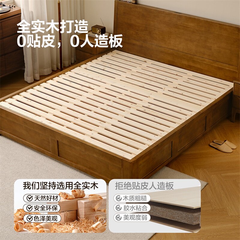 全友家居现代轻奢多功能储物实木床主卧室1米8双人床橡胶木家具