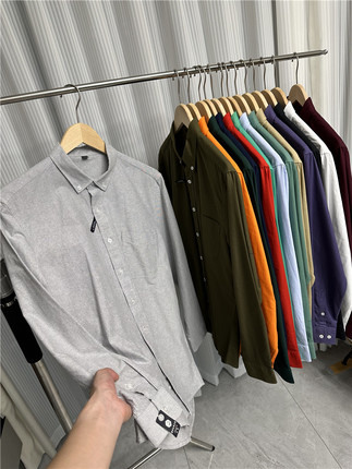 纯棉牛津纺面料!吸湿透气!秋季男士外贸纯色百搭休闲长袖衬衫潮