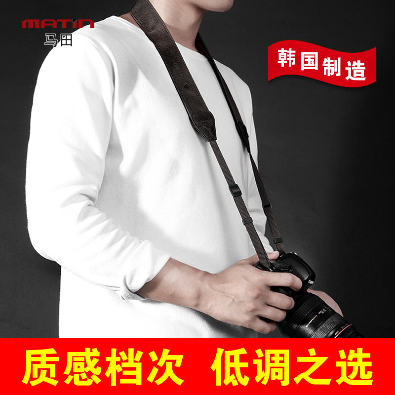 马田相机背带真皮复古文艺个性窄微单肩带手工植鞣牛皮宽单反带
