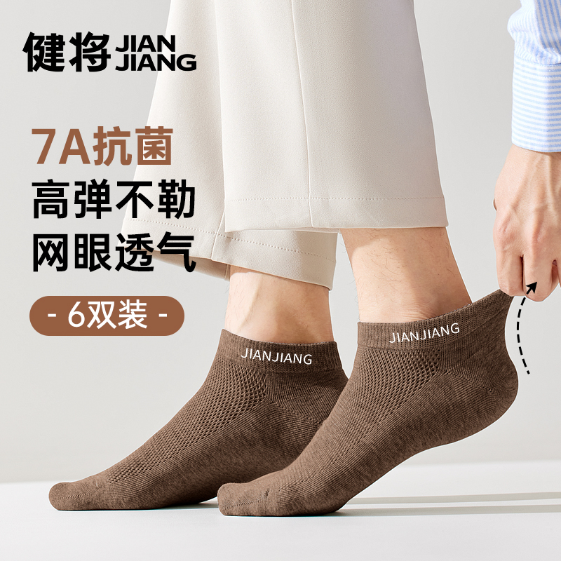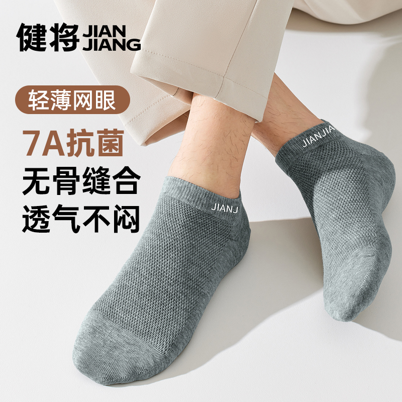 健将男士袜子男款纯棉网眼运动透气抑菌防臭短袜新款无骨男士短袜