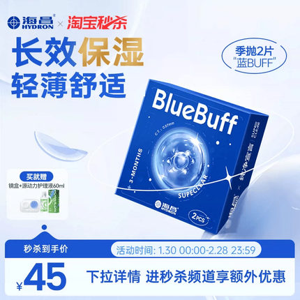【淘宝秒杀】海昌蓝buff季抛2片隐形近视眼镜水润舒适透明片正品