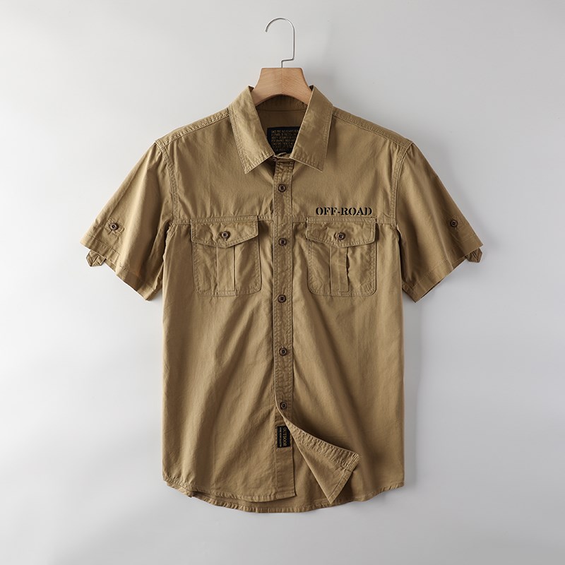美式工装风!高克重水洗全棉!男士夏季翻领多口袋休闲短袖衬衫潮