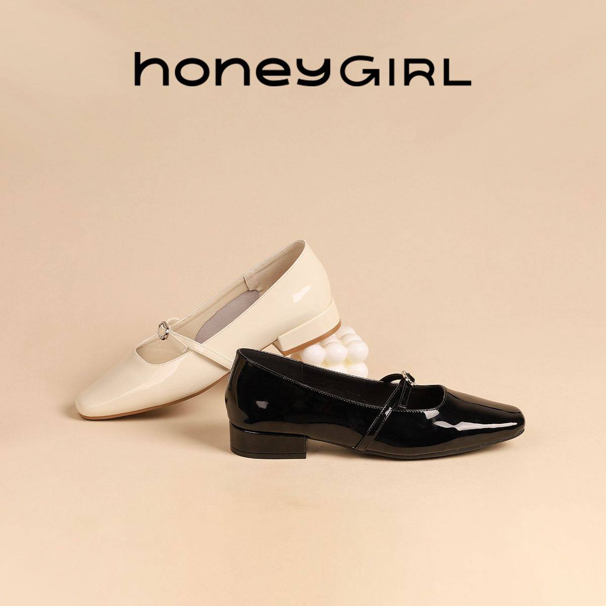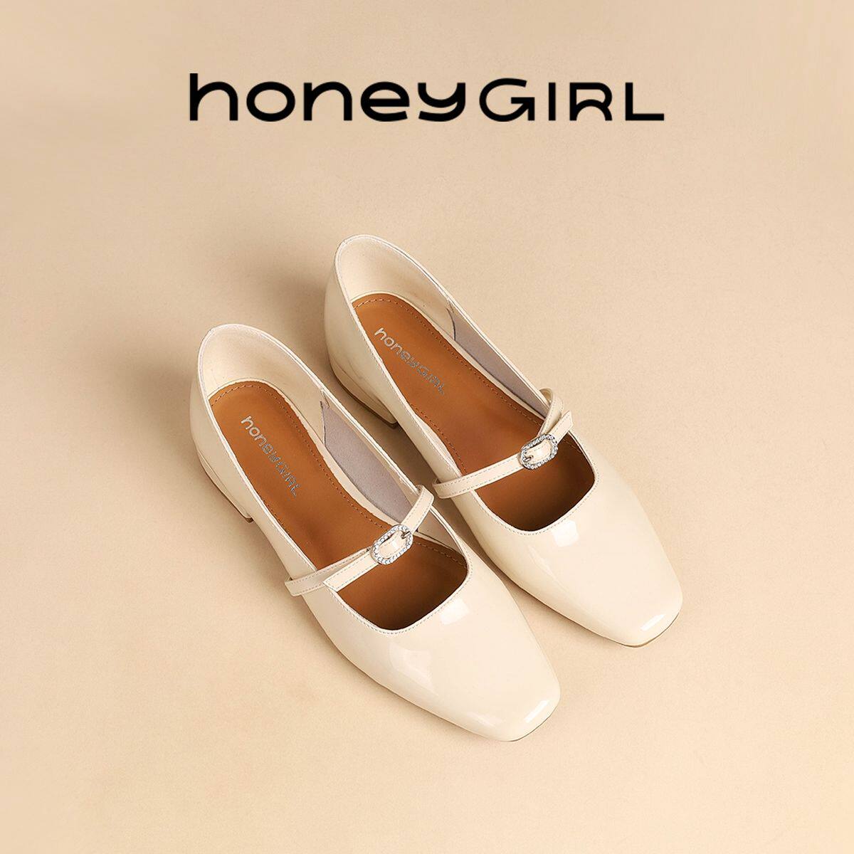 HoneyGIRL复古浅口玛丽珍女鞋2025新款春春季方头脚蹬低跟单鞋