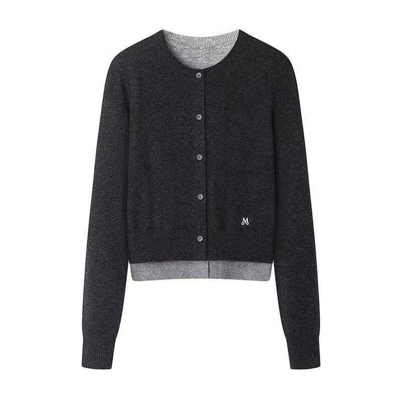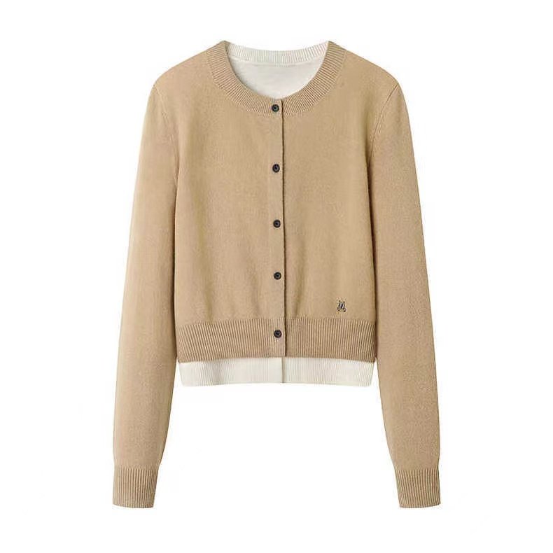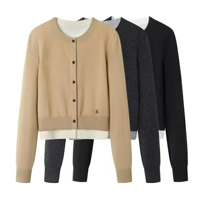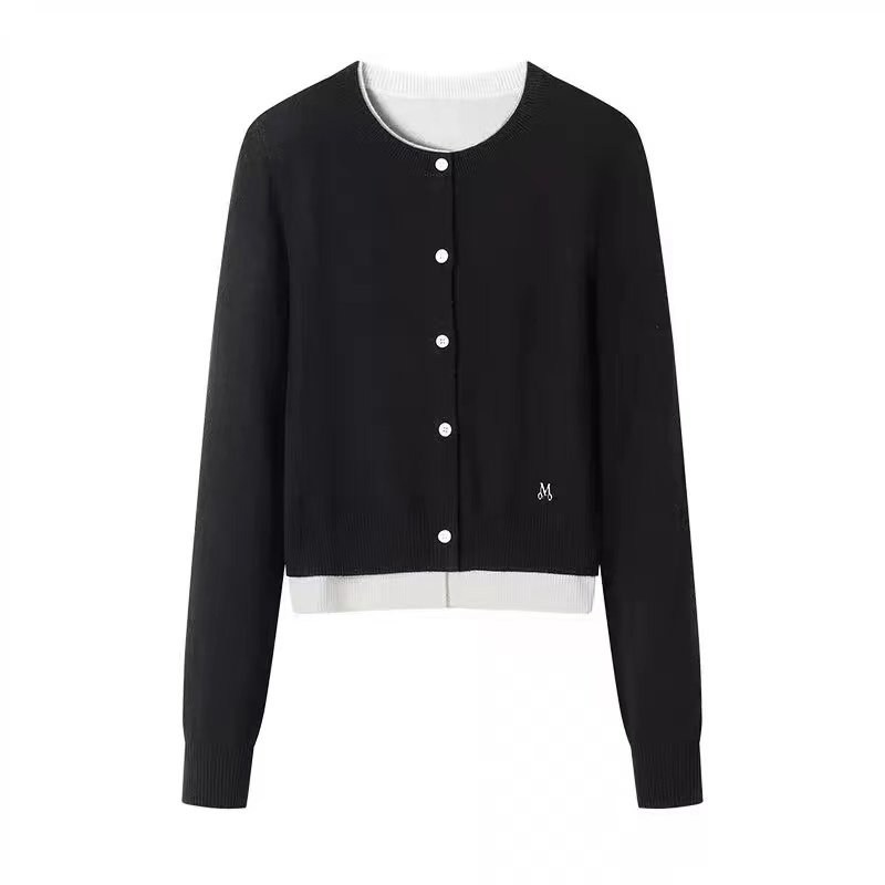 DN高端定制2025春新款休闲时尚气质拼接短款圆领假两件针织开衫女