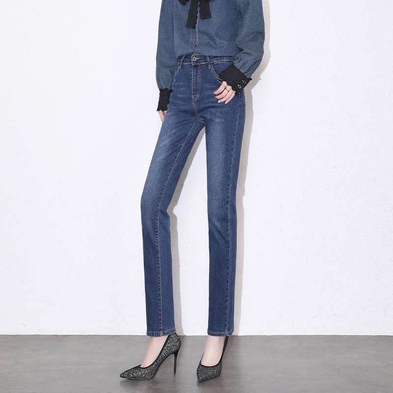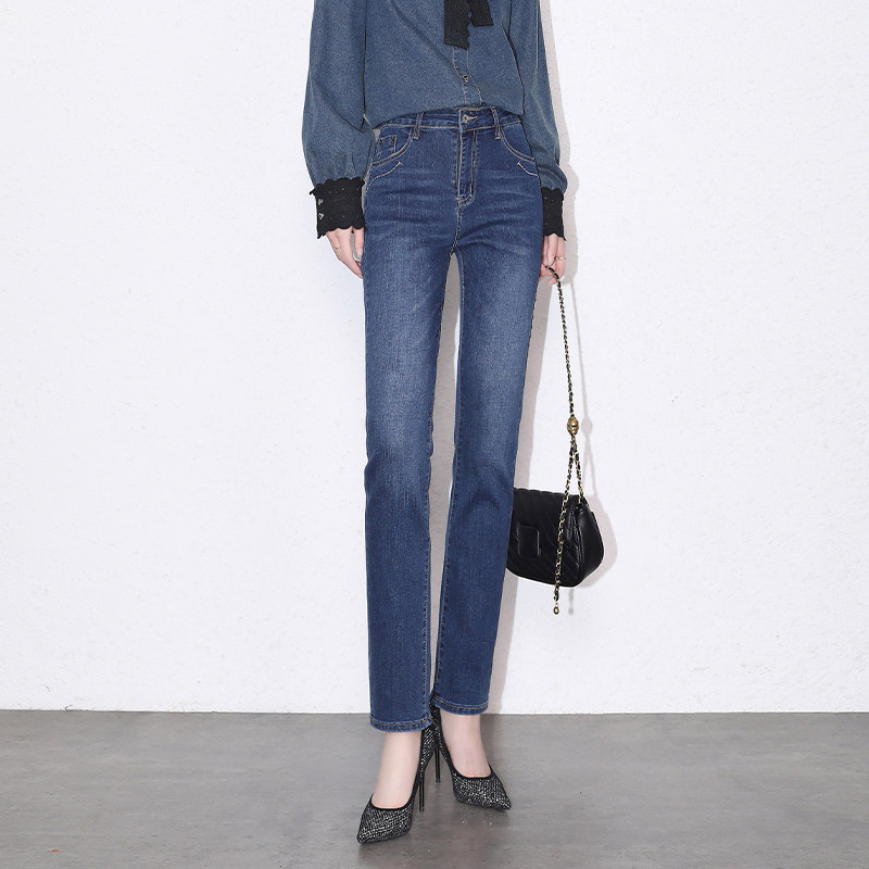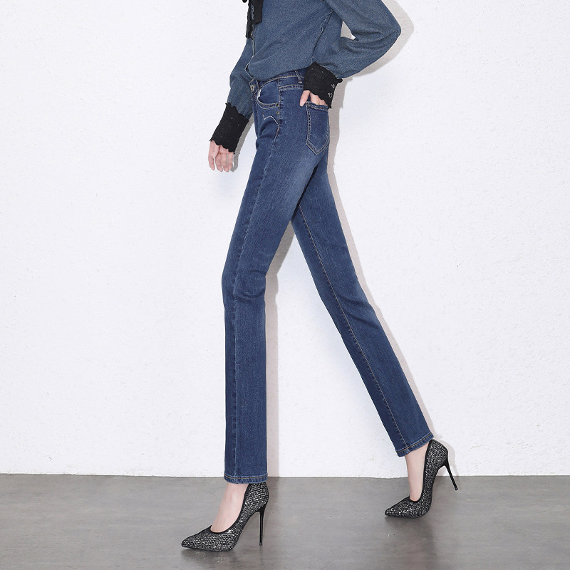 白鹿语牛仔裤女复古2025春款纯色水洗修身长裤紧身小脚裤烟管裤