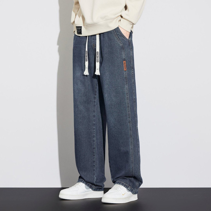 男士直筒美式休闲裤子2026新款加绒加厚牛仔裤男款青少年宽松阔腿