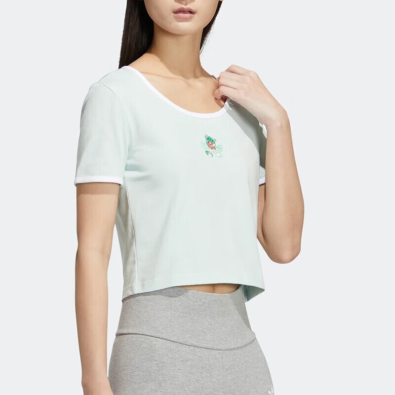 正品阿迪达斯BEAR CROP TEE 女子运动宽松透气短袖T恤HR6911