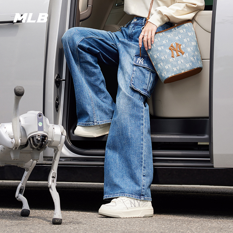 MLB官方女款复古阔腿牛仔裤街头风牛仔喇叭裤25秋季新款DPB04