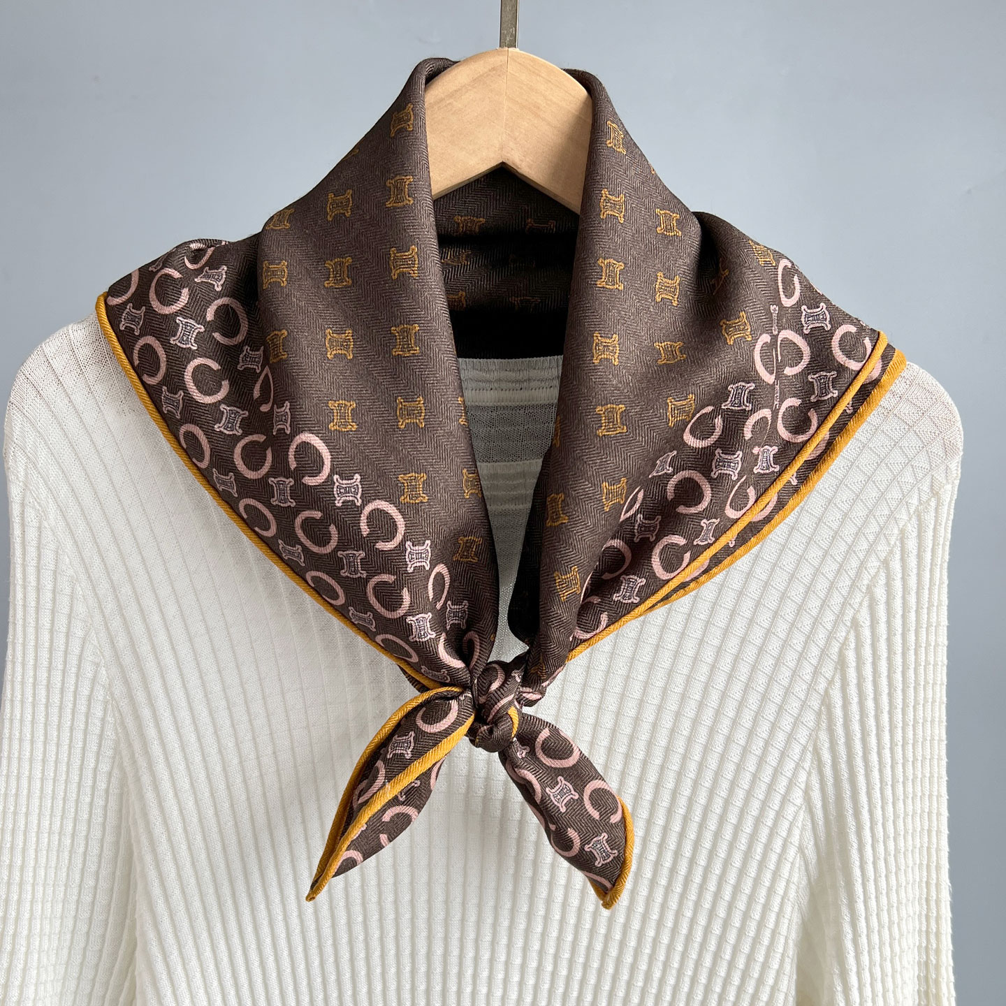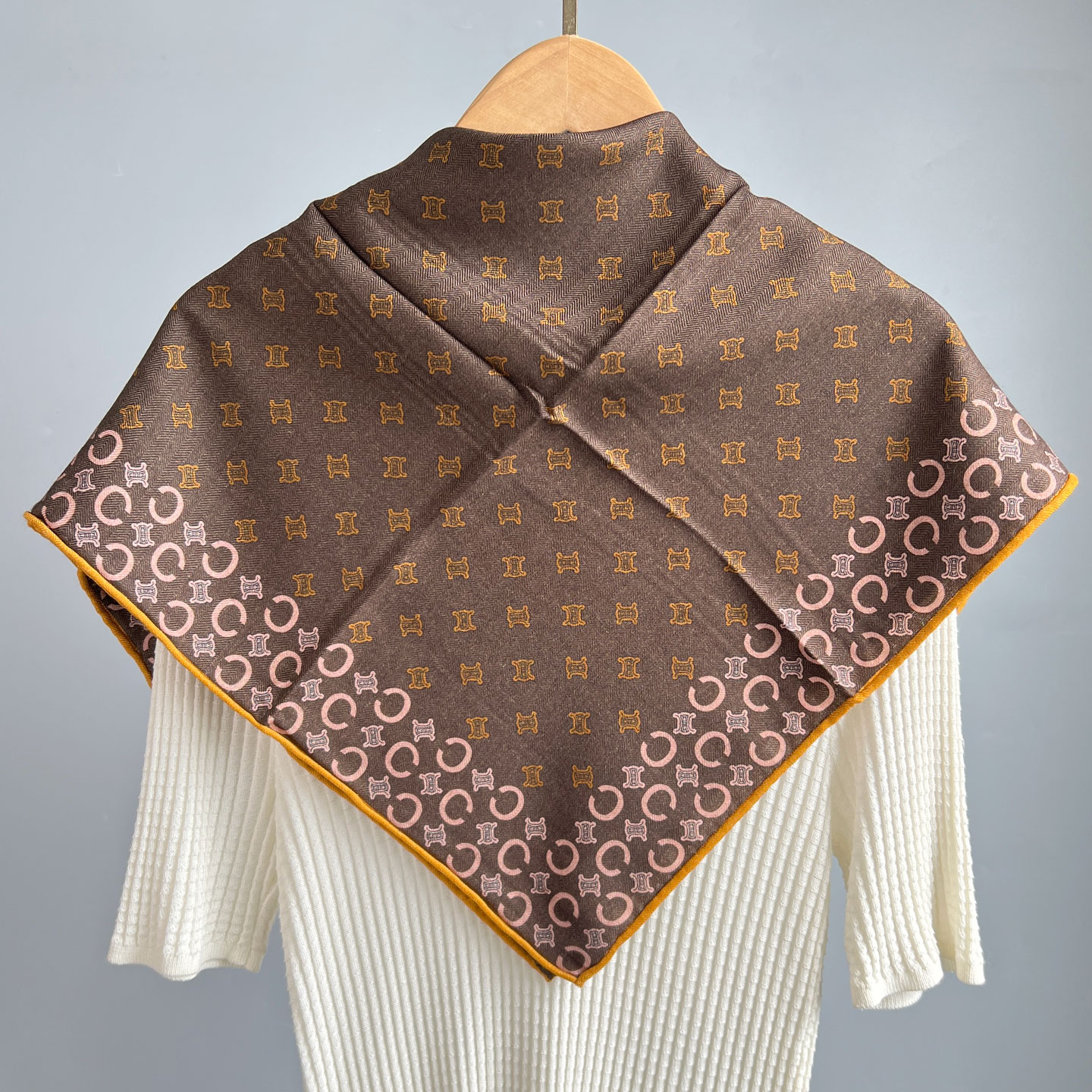 凯旋门65cm经典老花咖色百搭真丝羊毛中方巾秋冬保暖围巾小领巾