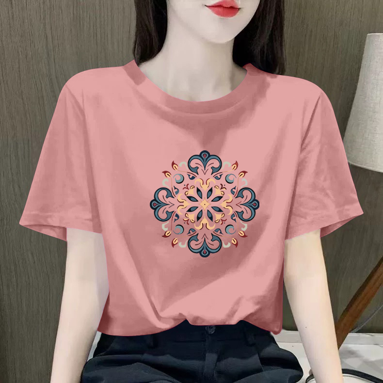大牌清仓女装纯棉100%百搭宽松印花上衣夏季时尚减龄遮肉短袖T恤