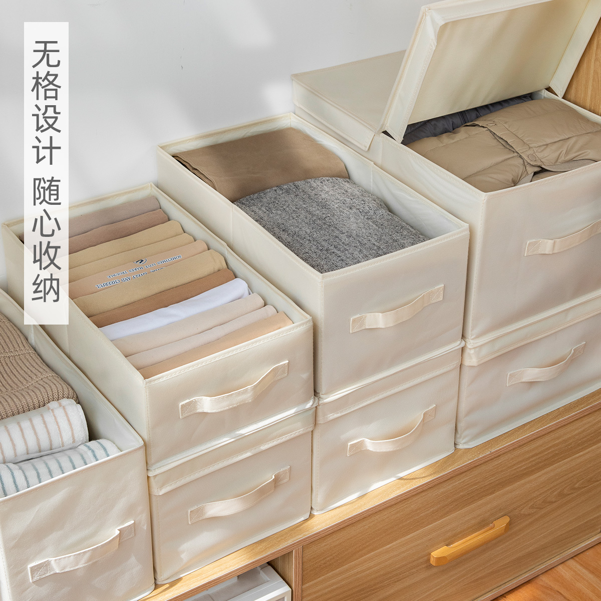 牛津布收纳箱衣柜分层整理盒家用衣服裤子收纳盒抽屉式折叠置物箱