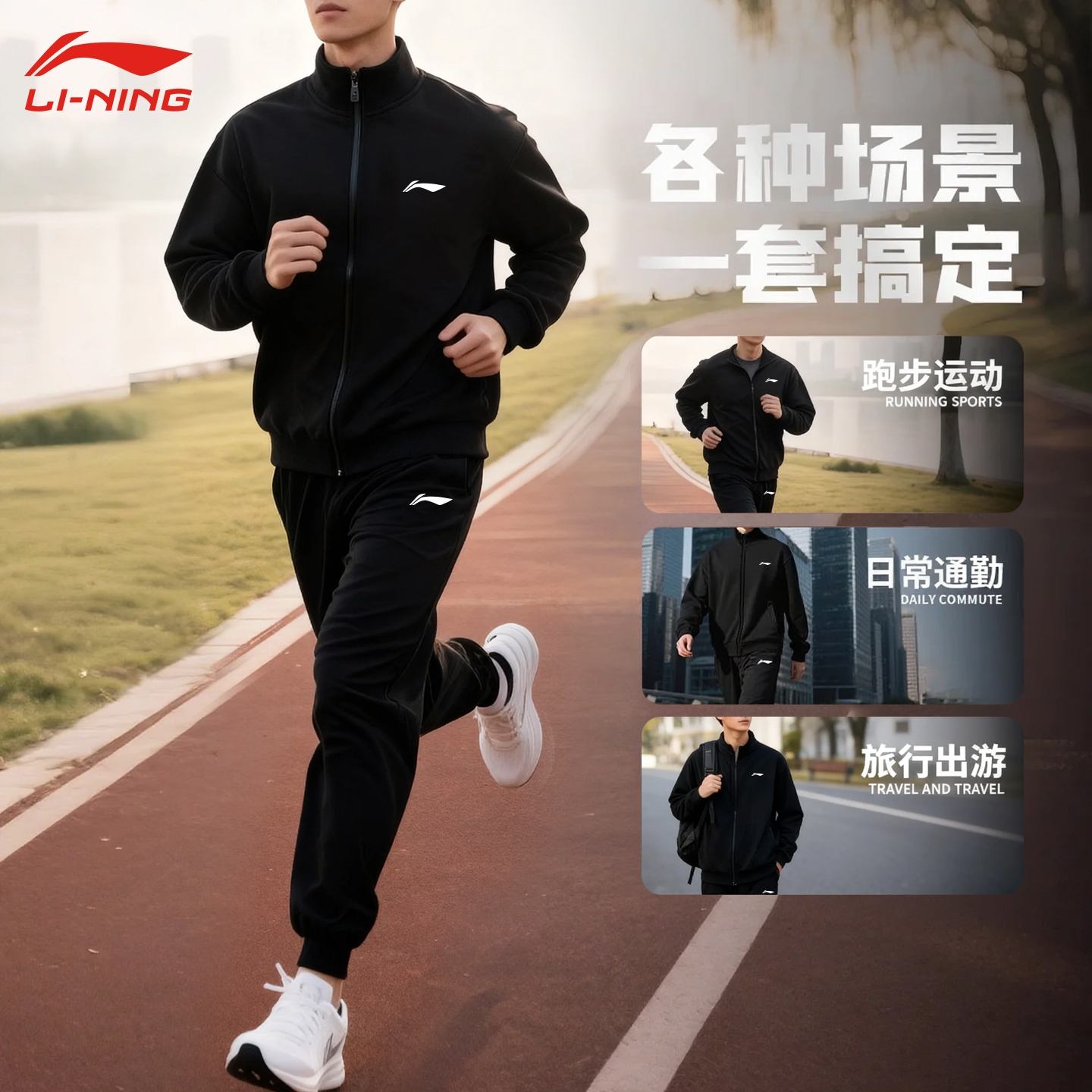 李宁跑步套装男秋冬健身户外晨跑加绒外套裤子训练服运动套装男士
