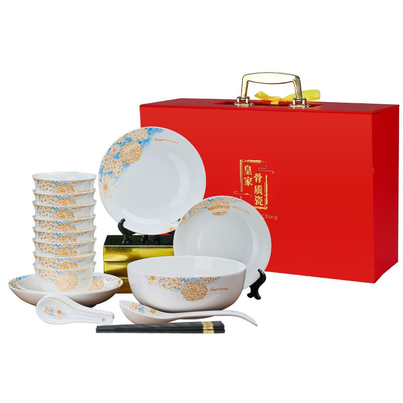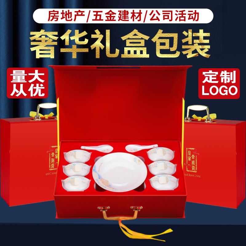 礼品碗套装礼盒装定制logo印字图案22头陶瓷餐具骨瓷碗碟高档商务