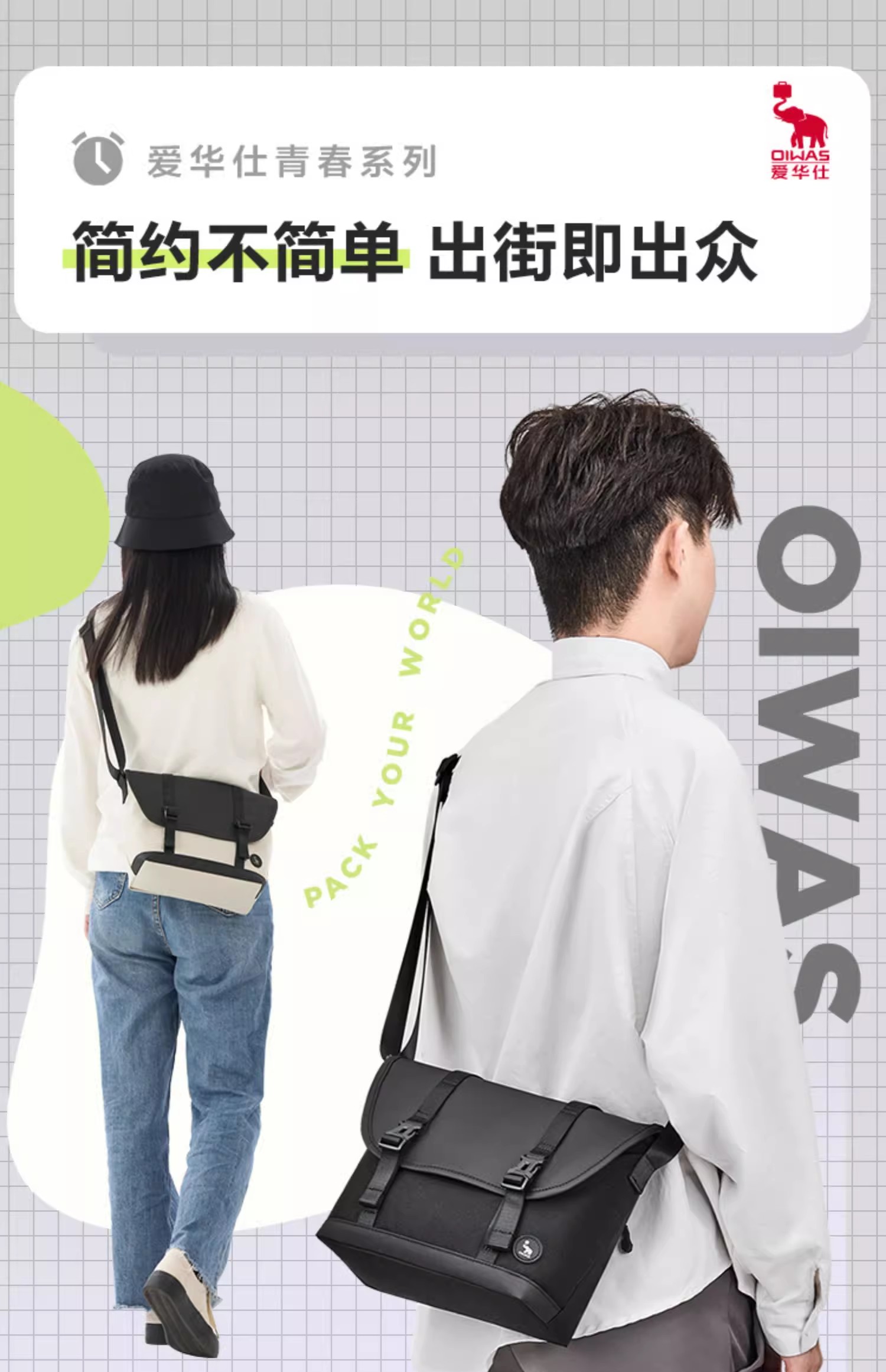 爱华仕新款单肩包网红时尚帆布包女学生单肩斜挎包休闲潮流挎包男