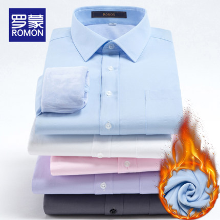 罗蒙男士长袖白衬衫2021秋冬季新款潮流加绒加厚保暖衬衣上衣外套