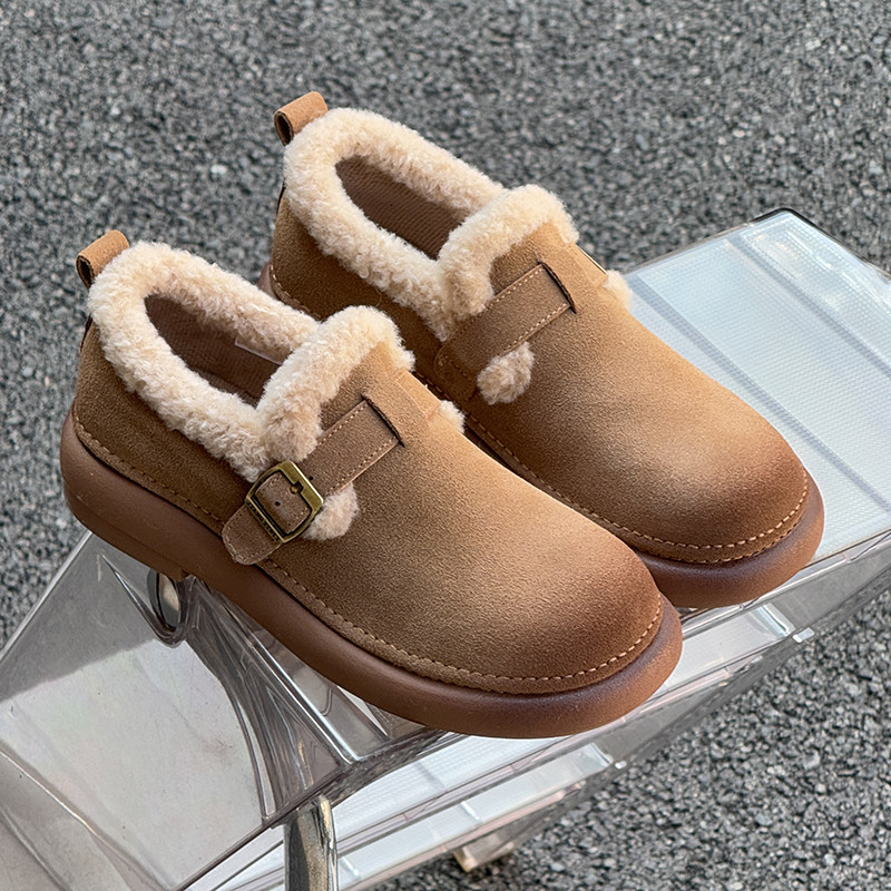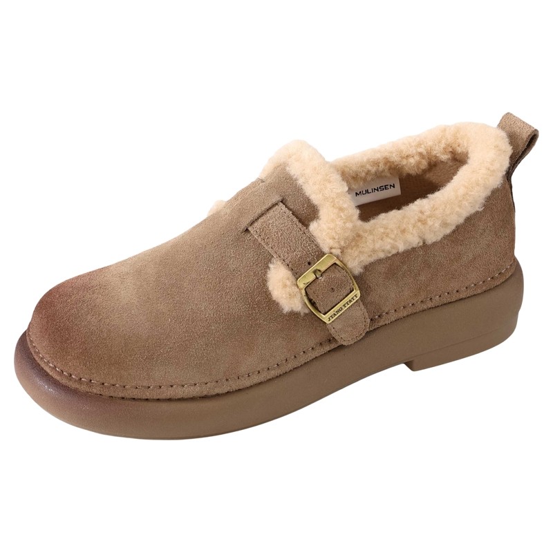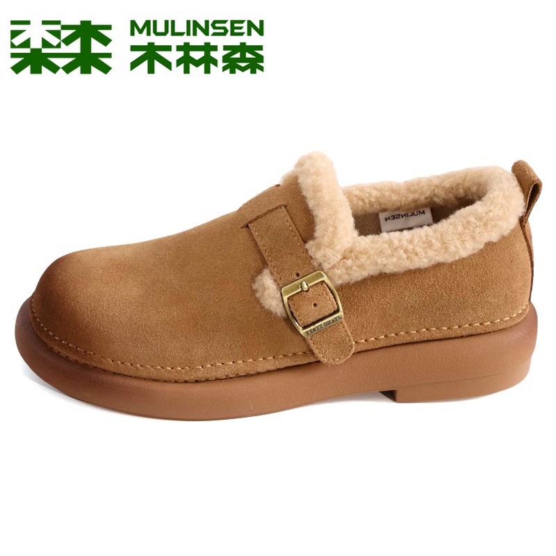 木林森女鞋2025冬季新款加绒保暖复古勃肯鞋女全包软底休闲毛毛鞋
