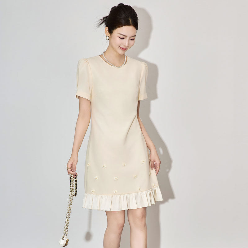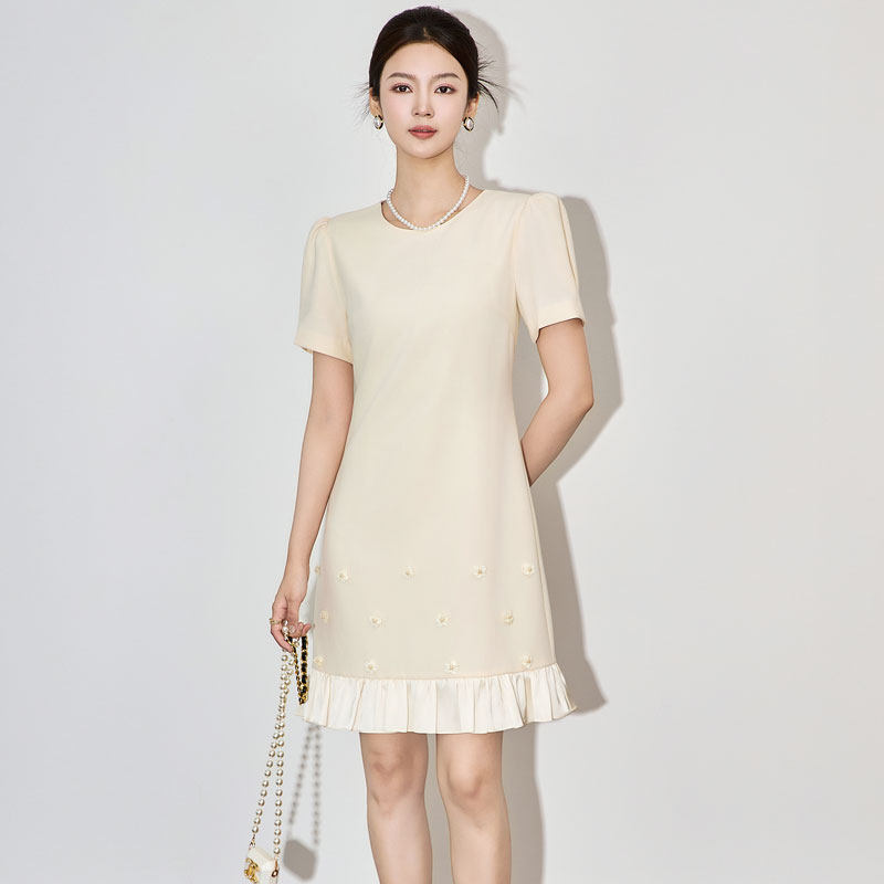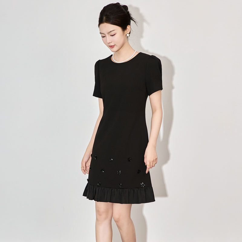 迪奥轻奢小香风连衣裙女时尚钉珠亮片刺绣高级感礼服中长裙25新款