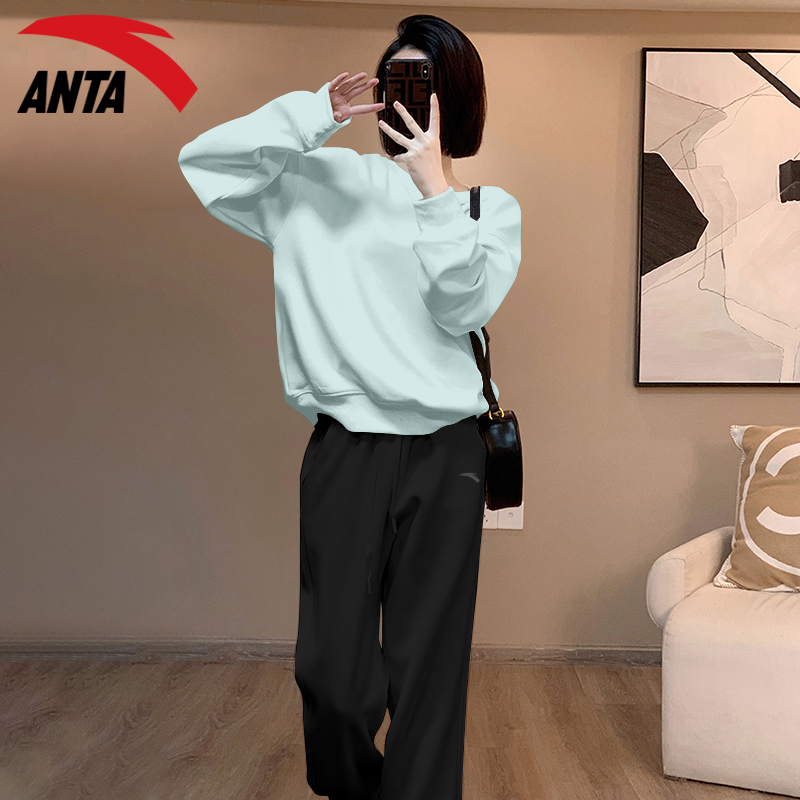 安踏套装女士春秋款运动休闲服宽松圆领卫衣卫裤时尚搭配女装两件