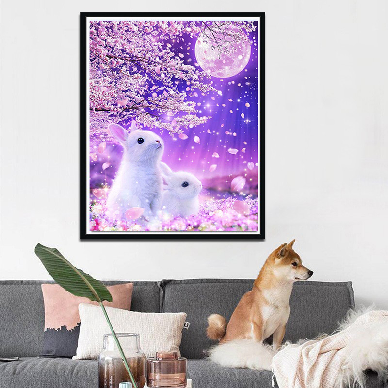 卡通动物兔子钻石画满钻新款2025樱花月亮风景卧室儿童贴钻十字绣