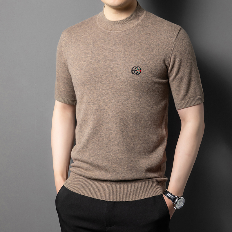男士针织短袖毛衣男半高领半袖羊毛衫秋冬半截袖打底衫修身卫生衣