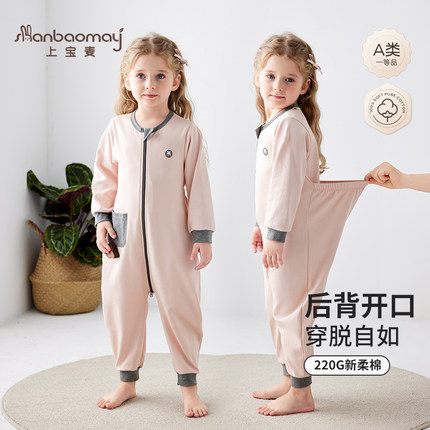 上宝麦春秋冬儿童连体睡衣拉链纯棉柔软男女童宝宝睡袋家居服防踢