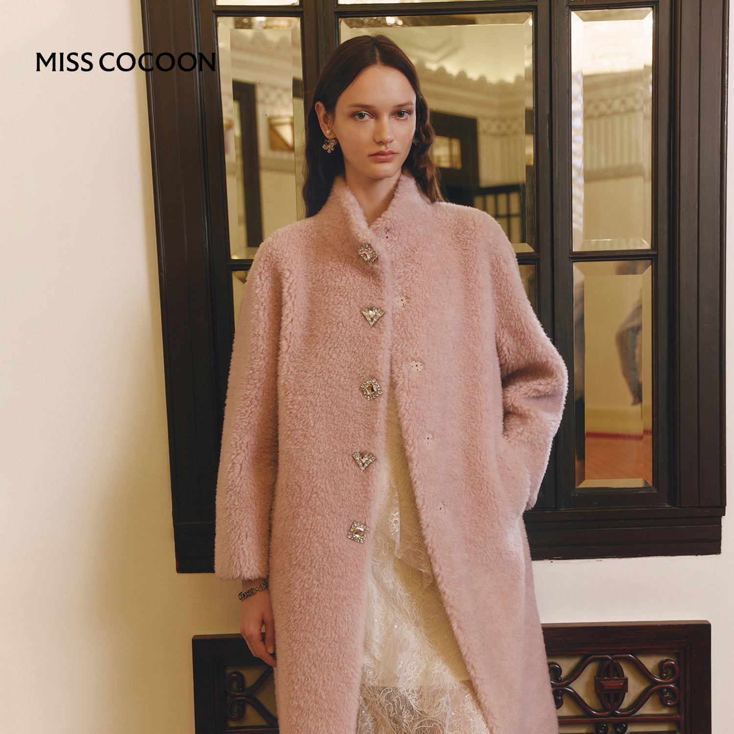 MISSCOCOON可可尼皮毛一体立领大衣女2025秋冬新款长款绵羊毛皮草