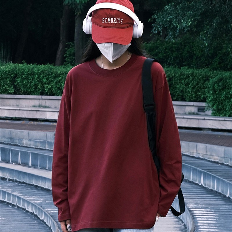 情侣装2024新款秋冬纯棉圆领男女长袖t恤纯色宽松ins潮休闲上衣女